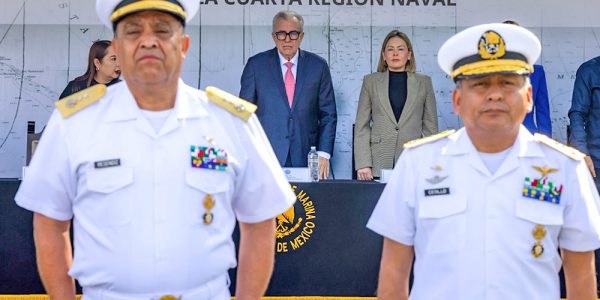 Rocha Moya atestigua ceremonia de entrega-recepción del mando de armas de la Cuarta Región Naval