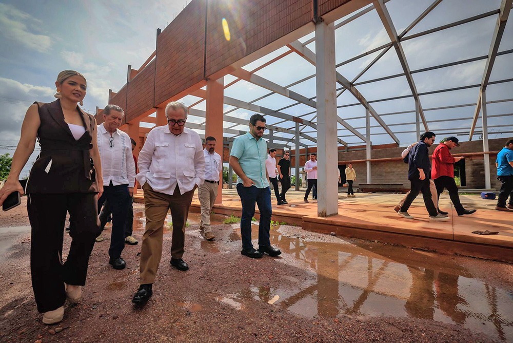 El gobernador recorrió la obra inconclusa en compañía del secretario general de Gobierno, Feliciano Castro Meléndrez, del secretario de Obras Públicas, Raúl Francisco Montero Zamudio y del secretario de Administración y Finanzas, Joaquín Landeros Guicho.