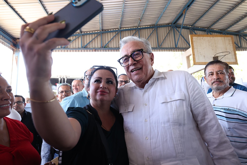 “Este es un beneficio muy grande para cada uno de nosotros, que hemos estados luchando más de 10 años por esta obra, hoy me siento feliz, me siento contenta de ver a nuestro gobernador acá y a nuestro presidente, porque la obra está presente y nos da un beneficio a todos, a la primaria, a mi casa, a mis vecinos, todos están felices y contentos y estoy aquí para agradecerle al gobernador Rubén Rocha Moya, gracias gobernador que volteó a vernos”, dijo muy emociona la señora.