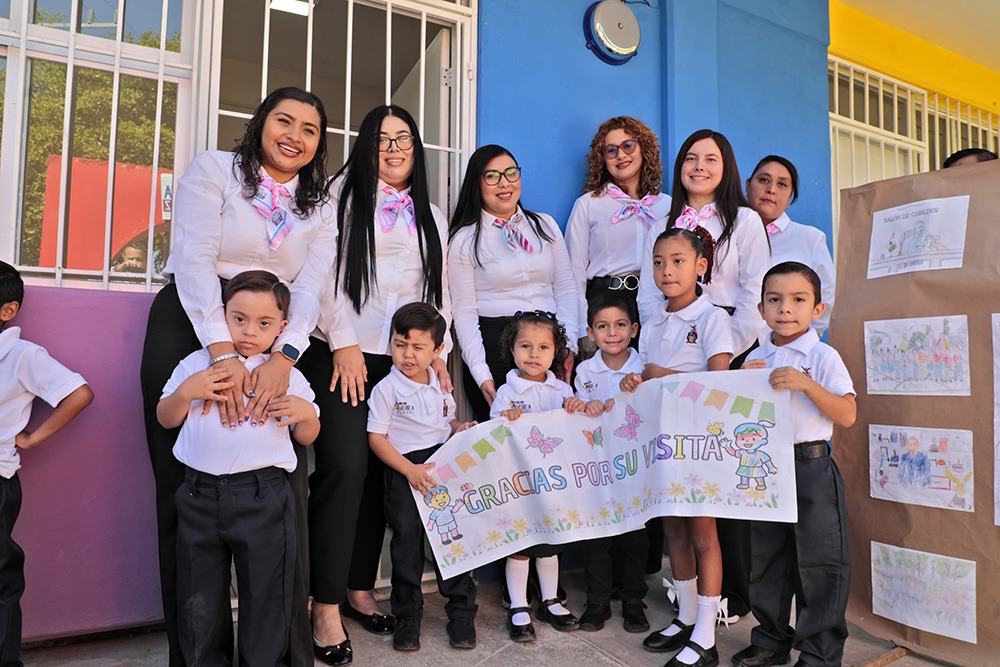 El mandatario estatal fue recibido por las niñas y niños de este plantel, así como por sus maestras, encabezadas por la directora Angélica Anahí Morales González, quien le dio la bienvenida y al mismo tiempo le agradeció estas nuevas aulas, pues tenían años solicitando su construcción, para ofrecer a los niños la oportunidad de recibir sus clases en condiciones óptimas y seguras.