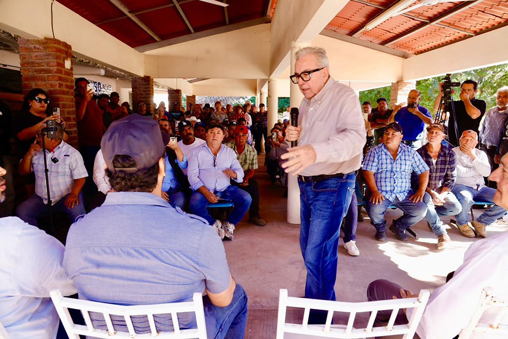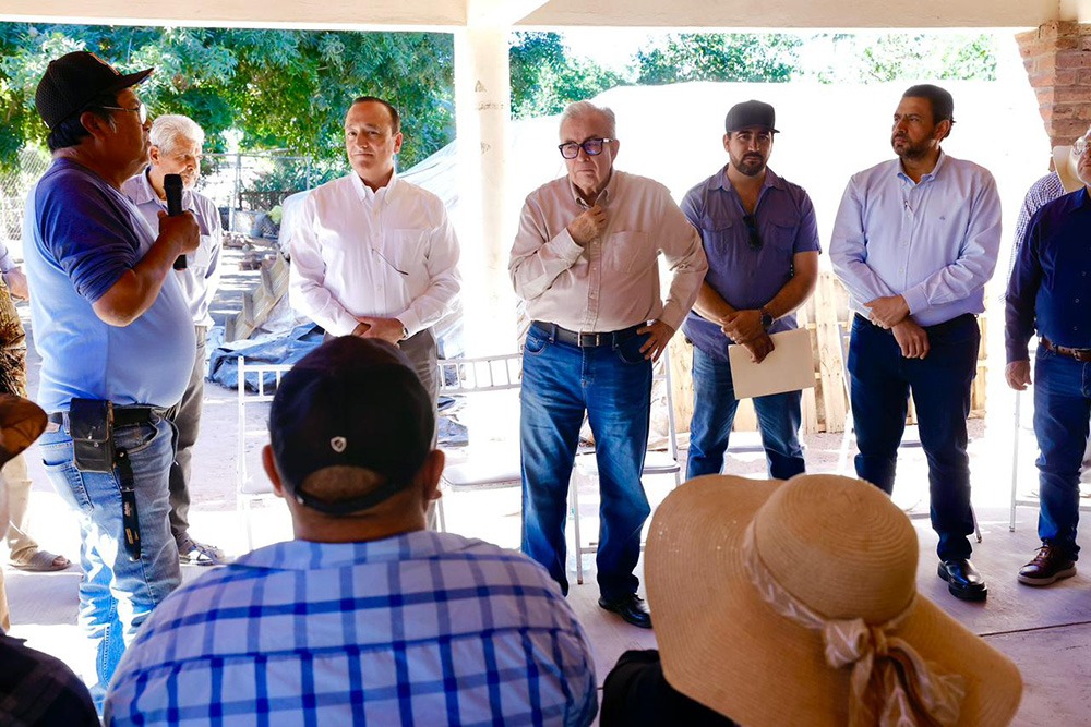El mandatario estatal arribó acompañado por el presidente municipal de Ahome, Antonio Menéndez de Llano Bermúdez; y por el secretario de Agricultura y Ganadería, Ismael Bello Esquivel, a esta comunidad donde fueron recibidos por decenas de ejidatarios encabezados por su comisariado ejidal, el señor Emanuel Rodríguez, quien les dio la bienvenida.