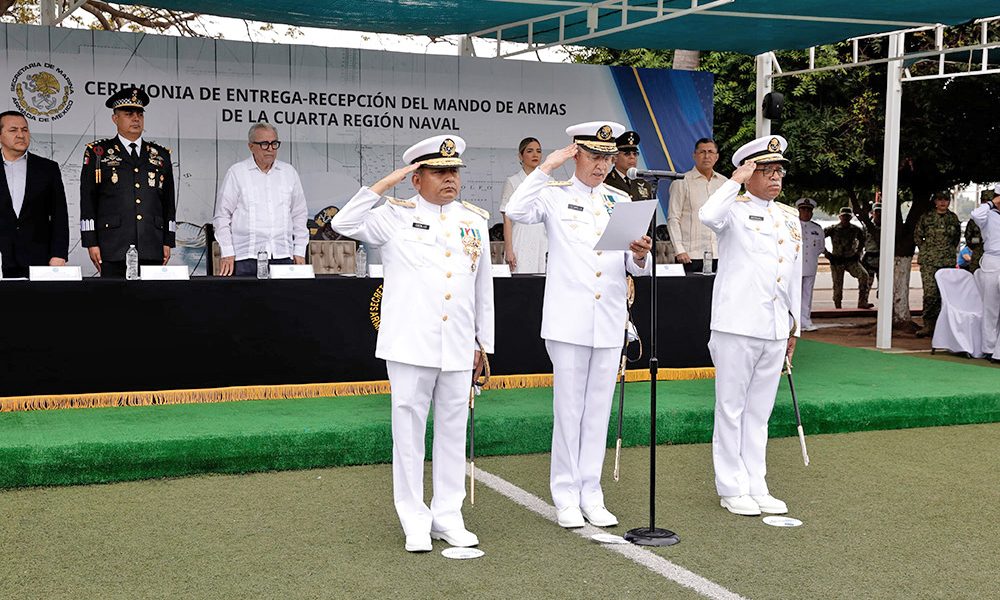 Correspondió al Oficial Mayor de la Secretaría de Marina, el almirante Francisco Guillermo Escamilla Cázarez, en representación del secretario y Alto Mando de la Marina Armada de México, el almirante Raymundo Pedro Morales Ángeles, tomar la protesta de ley al almirante Bernal Méndez como nuevo comandante de la Cuarta Región Naval.