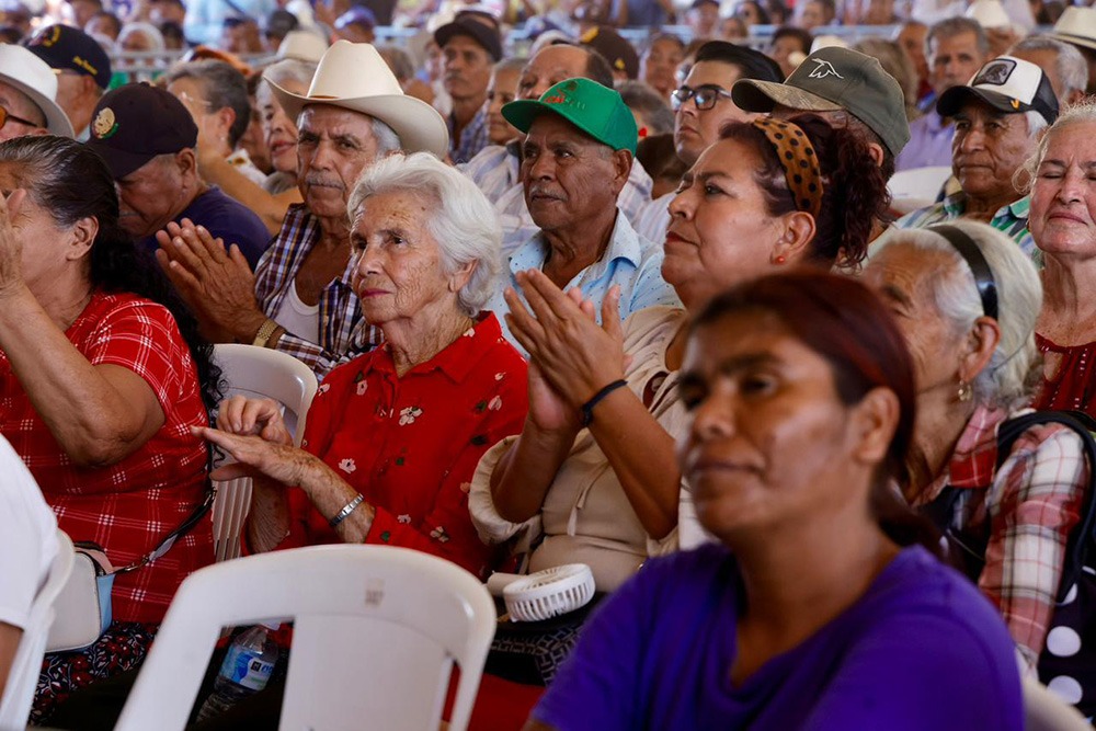 Ante las porras y muestras de alegría de cientos de vecinos de San Ignacio y comunidades de alrededor, así como de los municipios de Mazatlán y Elota, durante su mensaje, la presidenta Sheinbaum, destacó que, este 2026 los diferentes programas del bienestar cuentan con un presupuesto de un billón de pesos, lo que garantiza el apoyo a todas y todos los beneficiarios, ya sean adultos, mayores, estudiantes, jóvenes, entre otros. Recalcando que, más de 14 millones de adultos mayores en el país son beneficiados con este programa, que representa un gran beneficio para ellos y sus familias.