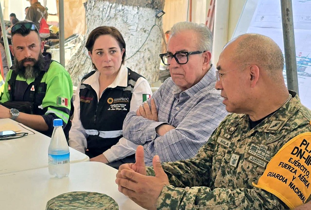 *Junto a la Coordinadora Nacional de Protección Civil Laura Velázquez, reiteran a la familia el total apoyo y respaldo en los trabajos de búsqueda de los trabajadores que aún siguen atrapados