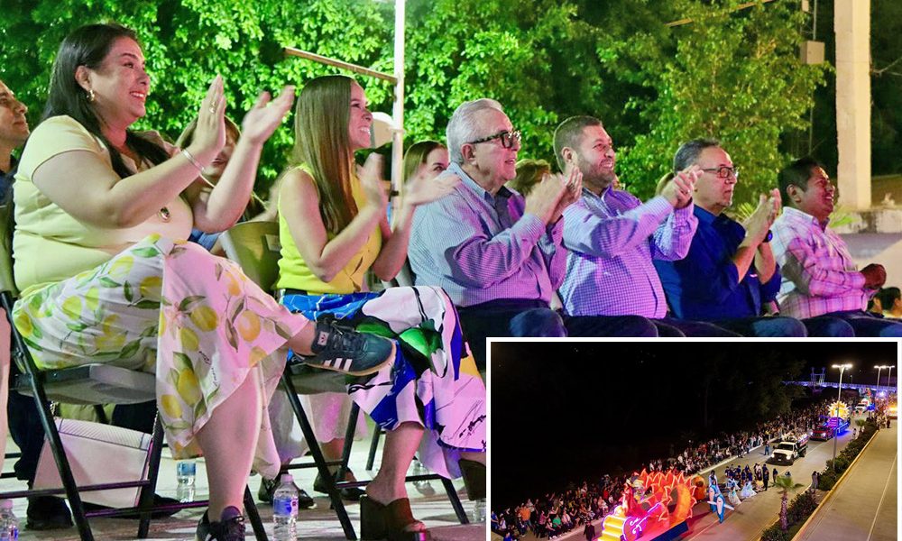 El mandatario estuvo acompañado por la secretaria de Turismo, Mireya Sosa Osuna y el alcalde José Paz López Elenes, en un ambiente de tranquilidad y sano esparcimiento familiar en el que los asistentes admiraron el pasar de los carros alegóricos al ritmo de la música.