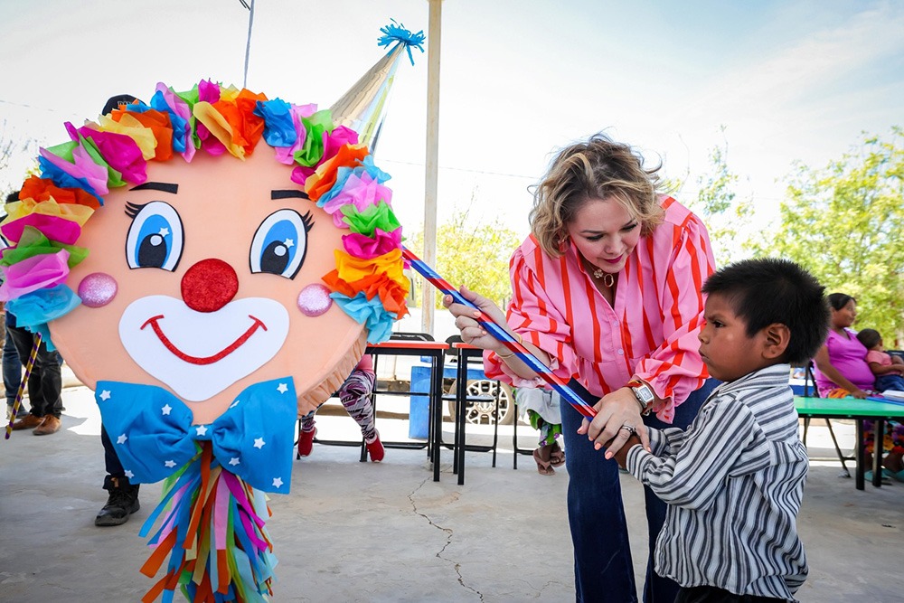 CHOIX, Sin.- En el marco de la conmemoración del Día de la Niñez, la presidenta del Sistema DIF Sinaloa, Eneyda Rocha Ruiz, encabezó una emotiva jornada de celebración en las comunidades indígenas de Los Mimbres y Nuevo Horizonte, en el municipio de Choix, llevando momentos de alegría, convivencia y bienestar para las niñas y niños de la región.