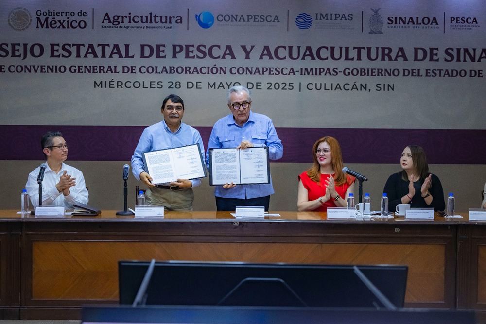 El primero los convenios lo suscribió el gobernador Rocha con el titular de la CONAPESCA, Alejandro Flores Nava; y el segundo de los acuerdos lo suscribió con el director general del IMIPAS, Víctor Manuel Vidal Martínez, en presencia de todos los miembros del Consejo Estatal de Pesca y Acuacultura de Sinaloa, en evento celebrado en el Salón de Gobernadores de Palacio de Gobierno.