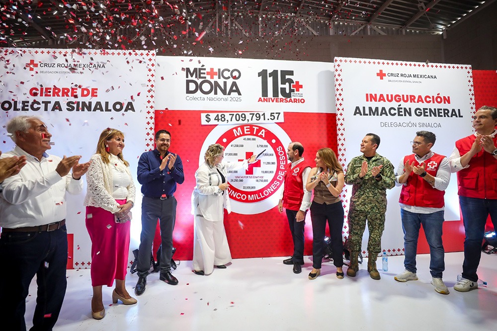 Destacando la participación de las y los sinaloenses para sumarse a las causas justas, este día se llevó a cabo el cierre de la colecta 2025 de Cruz Roja Sinaloa, en la que se recaudó más de 48 millones de pesos, además se resaltó como un acto inédito la donación de 10 ambulancias por parte del Gobierno de Sinaloa que encabeza el Dr. Rubén Rocha Moya, lo que demuestra un compromiso con el bienestar de la población resaltando su humanismo.