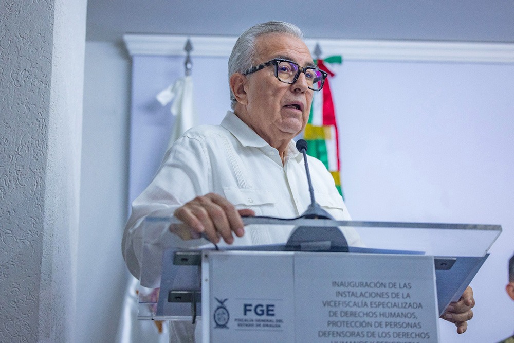 Al inaugurar las oficinas de la Vicefiscalía Especializada de Derechos Humanos, Protección de Personas Defensoras de los Derechos Humanos y Periodistas, ubicadas al interior de la Fiscalía General del Estado, el gobernador Rubén Rocha Moya reconoció el trabajo tanto de comunicadores como de defensores de derechos humanos y colectivos, y refrendó el compromiso de crear las condiciones para que puedan desempeñar sus labores en un entorno de seguridad.
