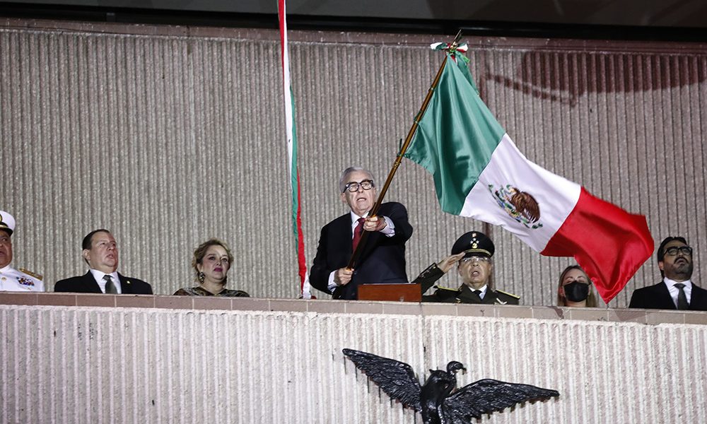 En punto de las 10 de la noche, el gobernador del estado salió al balcón principal para recibir la bandera nacional de manos de una escolta del 94 Batallón de Infantería de la Novena Zona Militar, para inmediatamente dirigirse a la orilla del mismo balcón y dar el tradicional Grito de Independencia, para recordar el llamado que hiciera hace 215 años el cura don Miguel Hidalgo y Costilla.