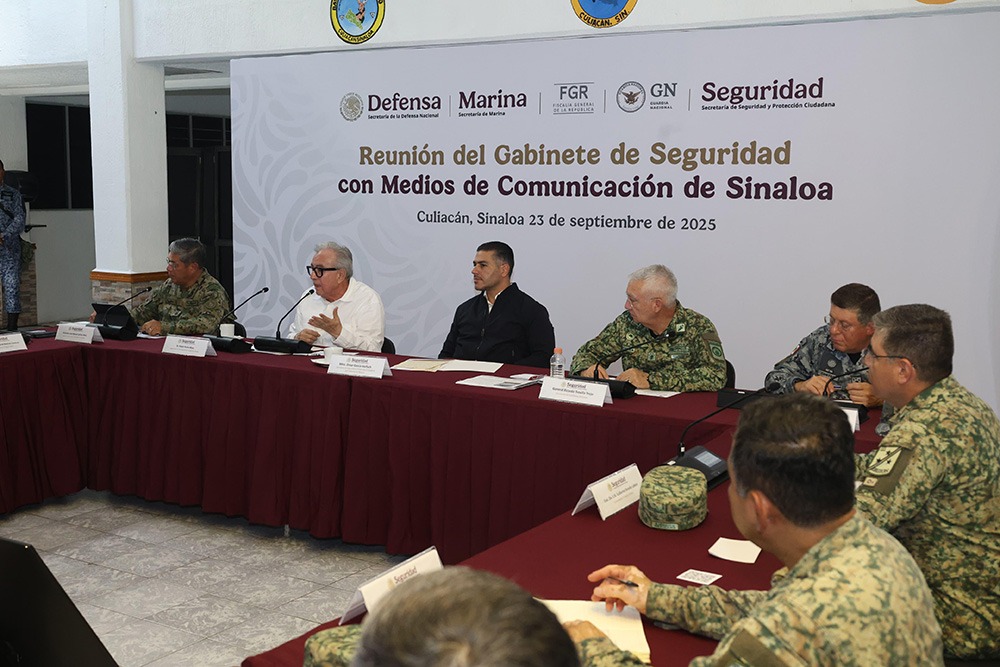 Lo anterior lo señaló en una reunión que sostuvieron el Gabinete de Seguridad Federal, el gobernador Rubén Rocha Moya e integrantes de la Cámara de la Industria de la Radio y la Televisión Sinaloa en seguimiento a la instrucción de la Presidenta Claudia Sheinbaum y para fortalecer la coordinación y colaboración con los medios de comunicación del estado de Sinaloa.