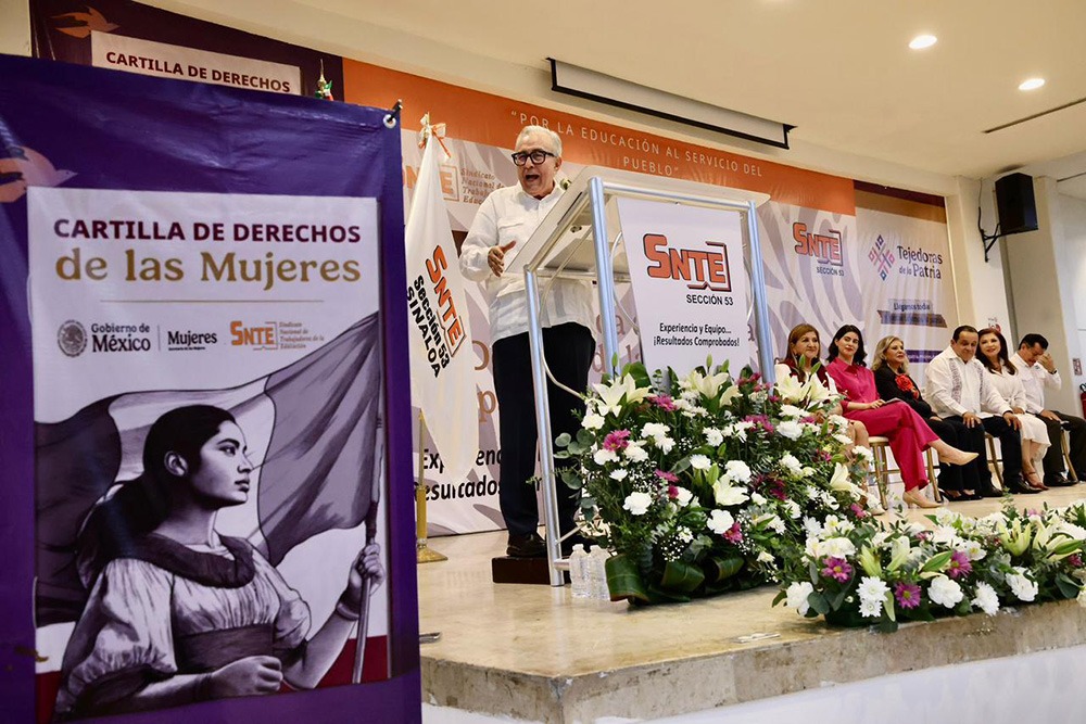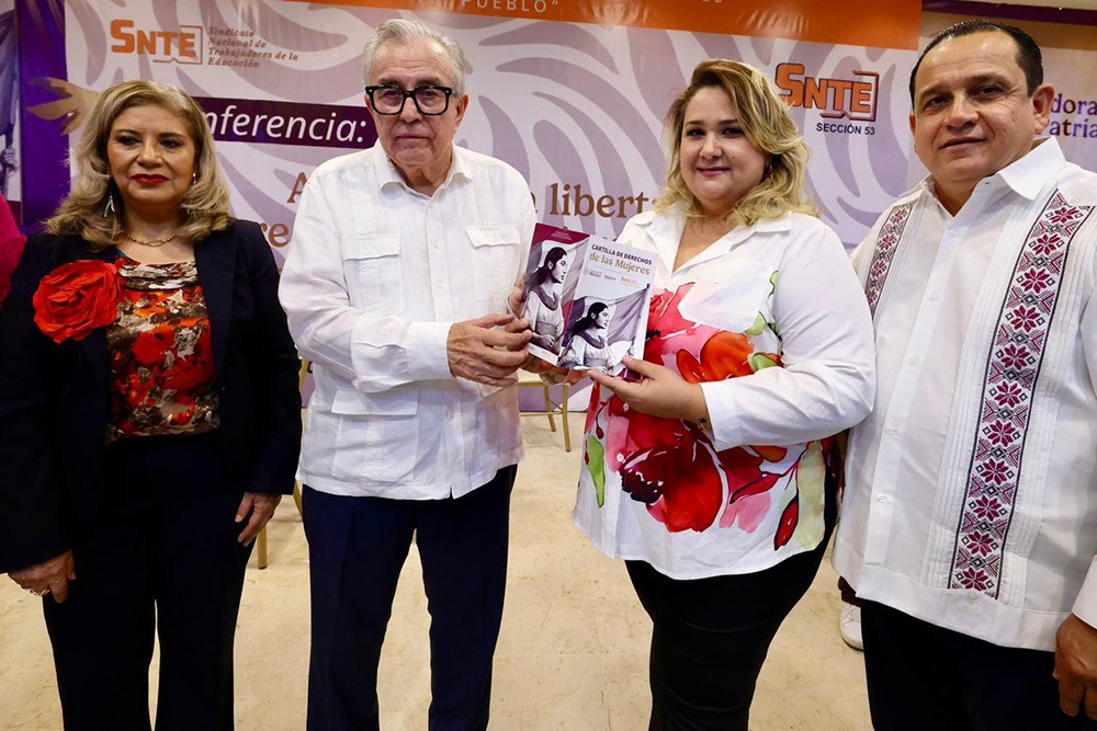 Lo anterior lo señaló el mandatario estatal ante más de 2 mil 300 agremiados del SNTE 53, en donde invitó a todas las mujeres a conocer y ejercer sus derechos, al participar en la entrega de la Cartilla de Derechos de las Mujeres.