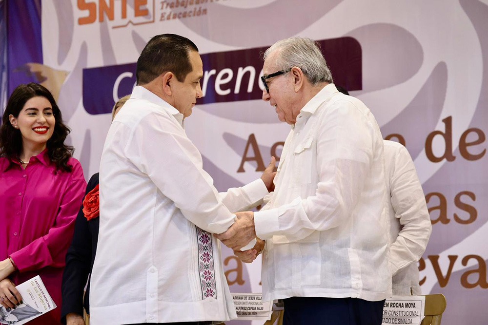 Acompañaron al Gobernador Rocha Moya, Gloria Himelda Félix Niebla, secretaria de Educación Pública y Cultura; Teresa Guerra Ochoa, presidenta de la Junta de Coordinación Política del Congreso del Estado; Juan Ramón Sánchez, representante de la Comisión Estatal de Derechos Humanos; Santiago Inzunza Cazares, director de COBAES; así como maestras, maestros, jefes de sector, supervisores, directores, delegados seccionales, personal de apoyo, además de padres y madres de familia.