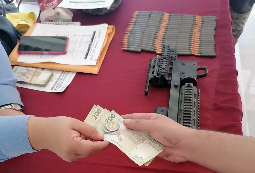 A cambio de las armas y explosivos canjeados por la ciudadanía, se entregó más de 1 millón de pesos en efectivo entre las personas participantes, lo que es posible gracias a la aportación de recursos autorizada por el Gobernador Rubén Rocha Moya, quien ha fortalecido esta campaña preventiva enmarcada en la estrategia nacional “Sí al Desarme, Sí a la Paz” que impulsa la Presidenta Claudia Sheinbaum Pardo.
