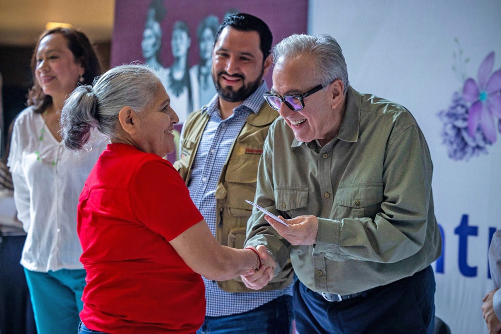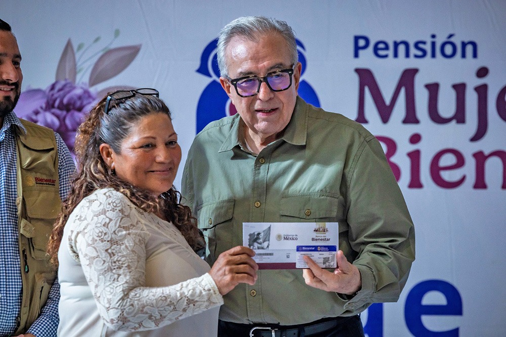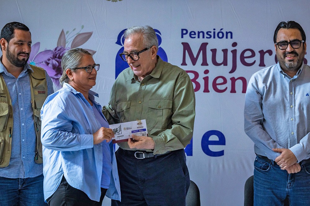 Para reconocer el trabajo no remunerado que las mujeres le dedican a su hogar, el gobernador Rubén Rocha Moya entregó las tarjetas del programa Pensión Mujeres Bienestar, que consiste en un apoyo bimestral de 3 mil pesos para todas las mujeres que tengan desde 60 a 64 años, programa que implementó la presidenta de la República, Claudia Sheinbaum Pardo.