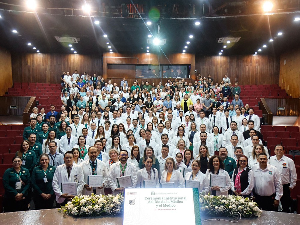 El evento reunió a directivos institucionales, representantes sindicales, médicas, médicos, trabajadoras y trabajadores del Instituto, quienes se congregaron en un acto simbólico para honrar a quienes, con su vocación y preparación profesional, velan todos los días por la salud y el bienestar de las y los derechohabientes.
