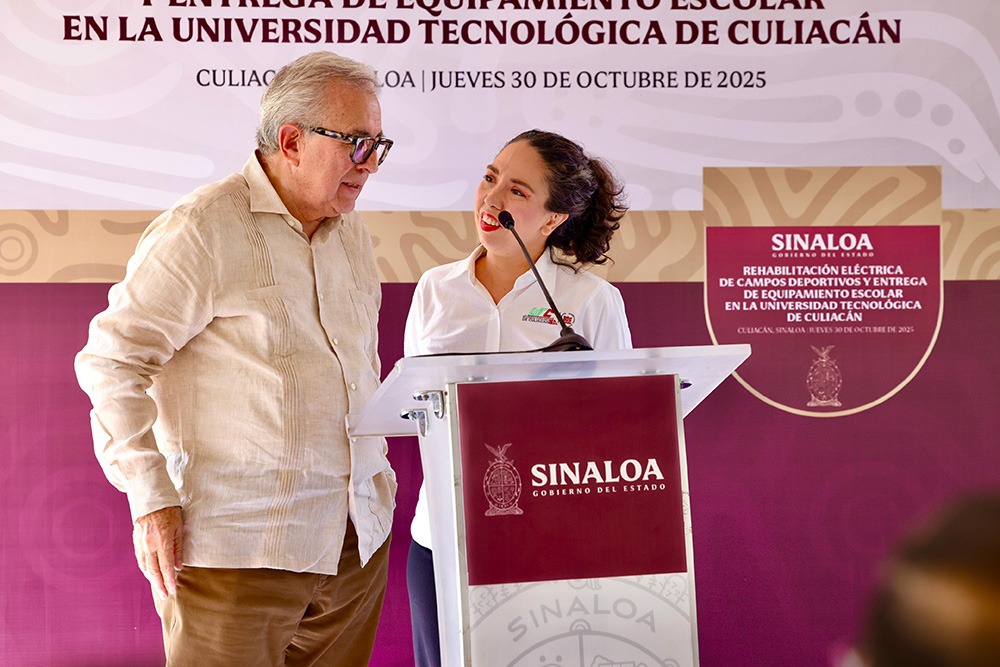 Al darle la bienvenida, la rectora Ana Lucía Escobar, le agradeció al gobernador del estado la entrega de estos apoyos y mejoras para las instalaciones de la UTC. “El día de hoy significa para nuestra comunidad la materialización de anhelos, la posibilidad de contar con apoyos para mejorar la tarea educadora, formadora de mujeres y hombres para incorporarse a la sociedad sinaloense y por eso va nuestro agradecimiento a nuestro gobernador por su apoyo”, dijo.