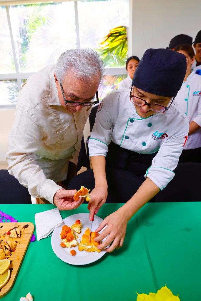El gobernador Rocha aprovechó el tiempo de su mensaje para entablar una amena charla con los estudiantes, y le pidió a un representante de las diversas carreras que se imparten en esta novel universidad, de 13 años de fundación, que explicaran en qué consistían y qué era lo que hacían en las prácticas.
