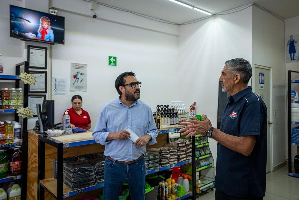 Durante su visita al establecimiento ubicado en el sector Terranova, Gámez Mendívil reconoció a los líderes de Productos Jocla como pioneros en la producción local de insumos de limpieza, destacando que su labor representa un orgullo para la ciudad.