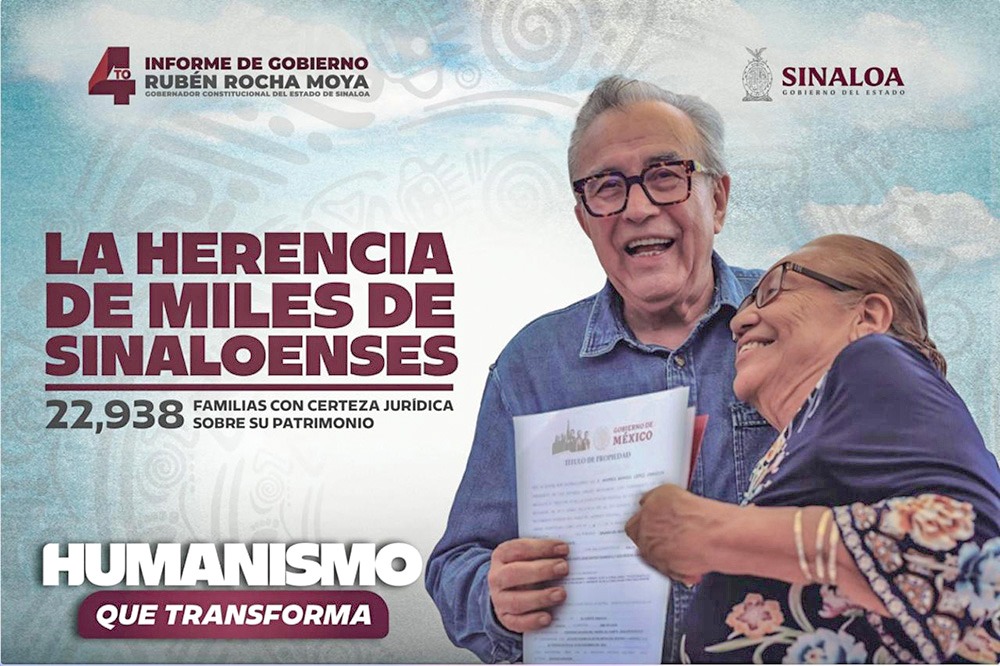 El mandatario, también destaca, en el material audiovisual, que se ha dado certeza jurídica sobre su patrimonio a más de 22 mil familias, dignificando la vida de las y los sinaloenses.