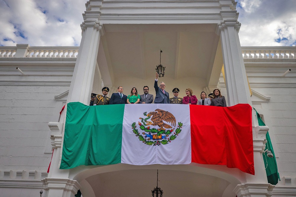 Luego de la conclusión de esta ceremonia, que finalizó con el marcial Toque Tres de Diana en honor a los ascendidos, y el Himno Nacional, el gobernador Rocha, acompañado por los mandos militares y autoridades civiles, subió al balcón de Ayuntamiento para presenciar desde ahí el tradicional desfile cívico militar, que abrió la Banda de Guerra del 94 Batallón de Infantería de la Novena Zona Militar.