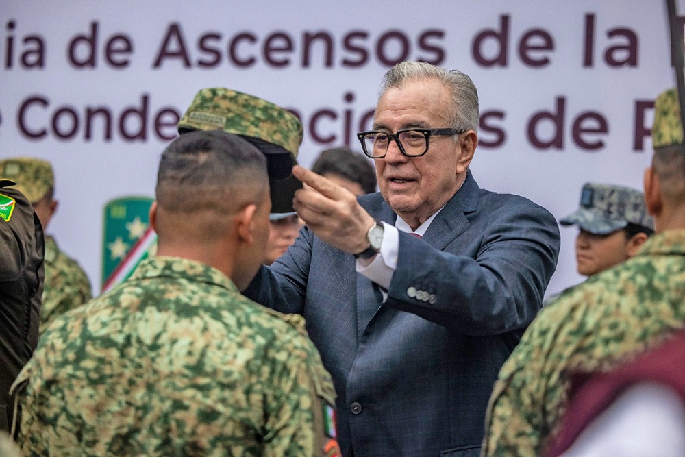 El gobernador Rubén Rocha Moya encabezó las actividades para conmemorar el 115 Aniversario de la Revolución Mexicana, una de ellas fue la entrega de ascensos a personal del Ejército Mexicano, Fuerza Aérea y Guardia Nacional y posteriormente desde el balcón del Ayuntamiento de Culiacán presenció el tradicional desfile cívico militar.