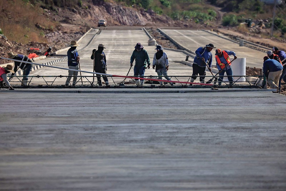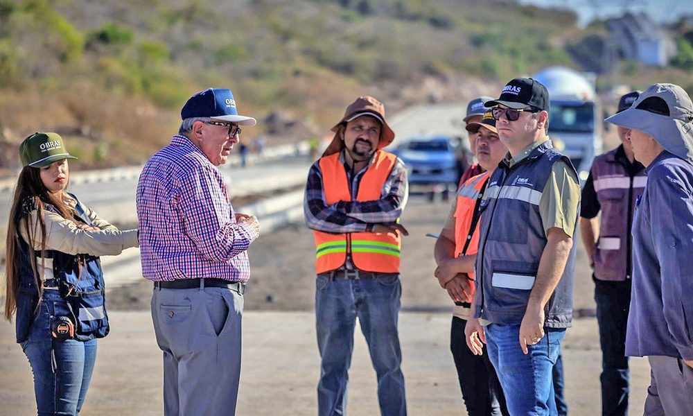 El mandatario estatal acompañado del secretario de Obras Públicas, Raúl Montero Zamudio y los supervisores Manuel Robles Montaño y Edgar Ulises Cerón, recorrió la obra constatando el buen ritmo de ejecución, destacando la pavimentación con concreto hidráulico de los primeros 700 metros lineales, y avance significativo en terracerías, subrasante y obra hidráulica.