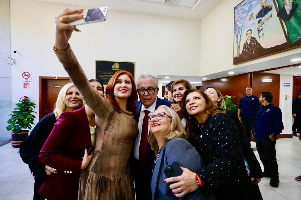 Durante esta reunión de trabajo con las diferentes fracciones políticas que conforman esta Legislatura, el Gobernador Rocha, señaló con convicción que, su administración está inspirada en los principios de la Cuarta Transformación que brinda bienestar a las y los sinaloenses.