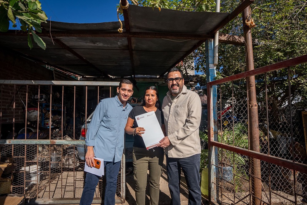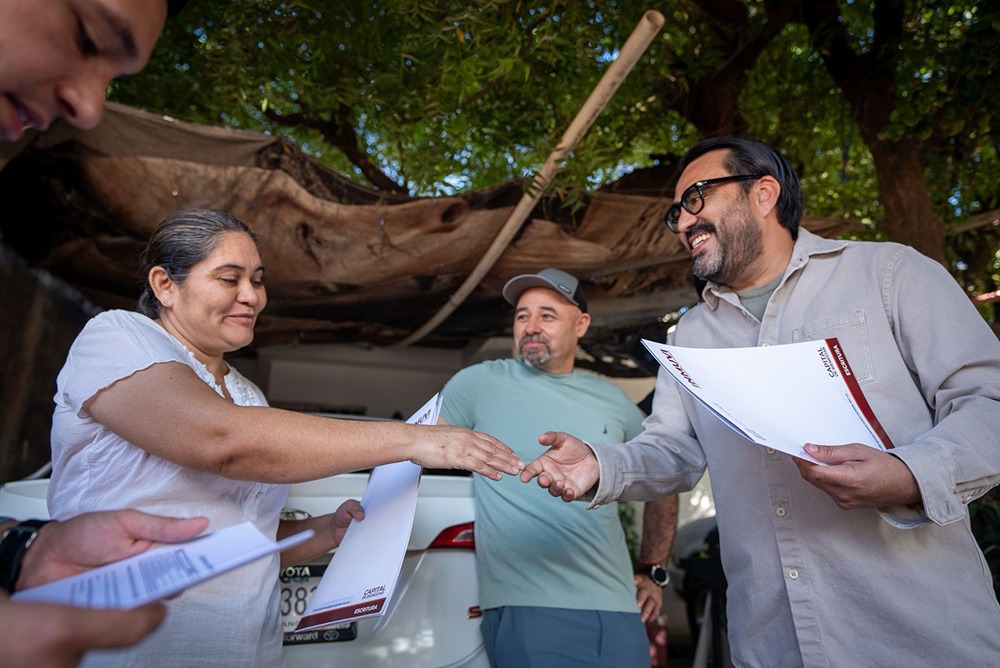 Durante este recorrido expresó que “venimos a entregar cinco escrituras a la puerta de la casa de estas familias. Son familias que tienen entre 15 y 17 años aquí y que tenían este trámite pendiente. Sabemos lo importante que es para ellos tener este documento en sus manos y poder acreditar que ahora sí su patrimonio ya es su patrimonio. Además, en cada visita aprovechamos el contacto con la ciudadanía, porque siempre nos reportan lámparas, baches o fugas; el acercamiento y la escucha siempre son de gran beneficio”.