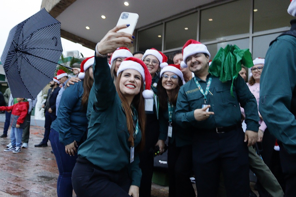 Como momento central, la doctora Medina López y el doctor Angulo Parra encabezaron la cuenta regresiva de 10 segundos para encender el árbol navideño, acompañados por trabajadoras, trabajadores y representantes sindicales. Al llegar al cero, el pino se iluminó, simbolizando unidad y colaboración.