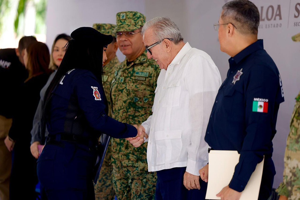 También, destacó la visión trazada por el Gobierno Federal y el liderazgo del gobernador Rubén Rocha Moya de que la presencia policial cuando se combina con programas sociales, oportunidades educativas y cercanía con la población tiene un impacto real en la transformación de la sociedad. “Es ahí donde la seguridad se vuelva humana y preventiva”, afirmó