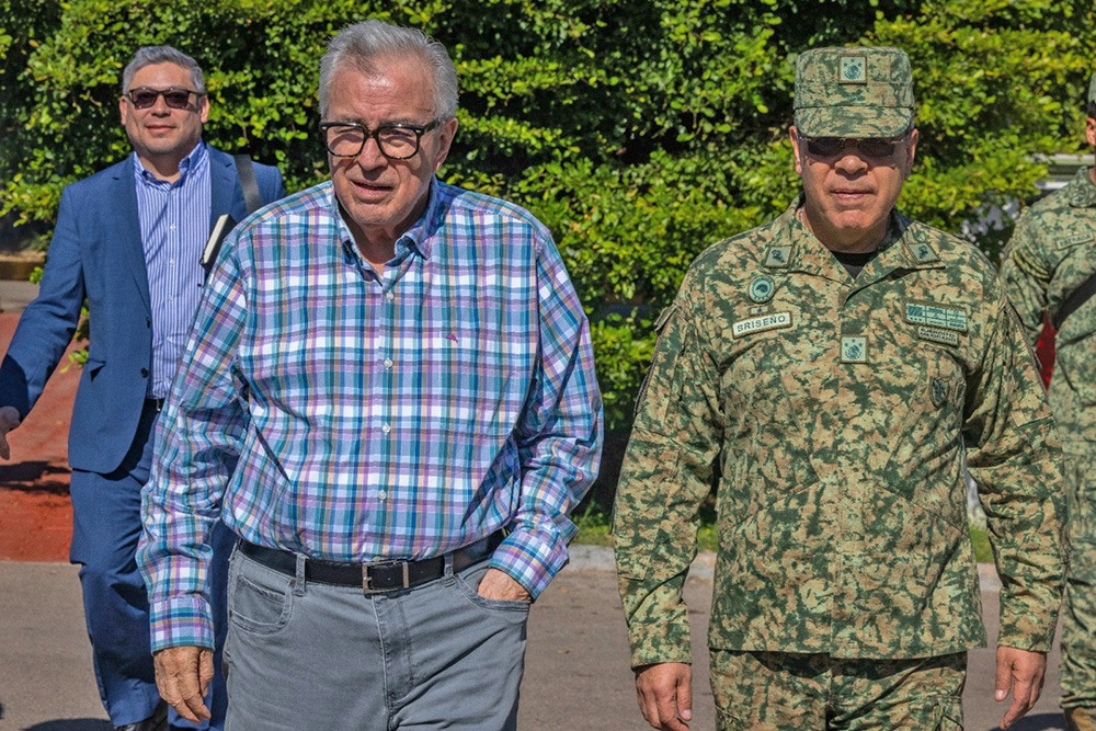 Contribuyendo a una cultura de paz y para que la sociedad sinaloense viva más tranquila y segura, el gobernador Rubén Rocha Moya, acompañó a Guillermo Briseño Lobera, comandante de la Tercera Región Militar y a Santos Gerardo Soto, comandante de la Novena Zona Militar, en la ceremonia de destrucción de armamento decomisado, sin reclamo futuro, donado y puesto a disposición de la secretaria de la Defensa Nacional.