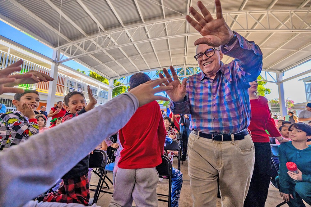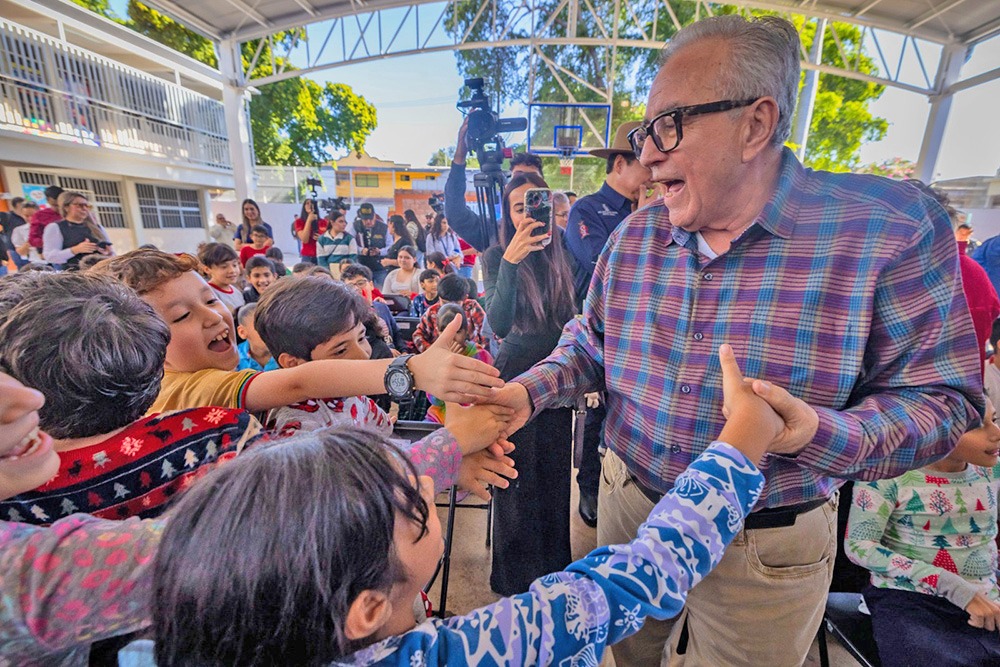 Asimismo, acompañado de la presidenta del Sistema DIF estatal, Dra. Eneyda Rocha, deseó a los niños y niñas, así como al personal administrativo y maestros felices fiestas. “Quiero que sean felices, que vivan muy bien, que gocen su Navidad, junto con sus papás, sus hermanas, hermanos. Quiero que la pasen muy bien”, subrayó.