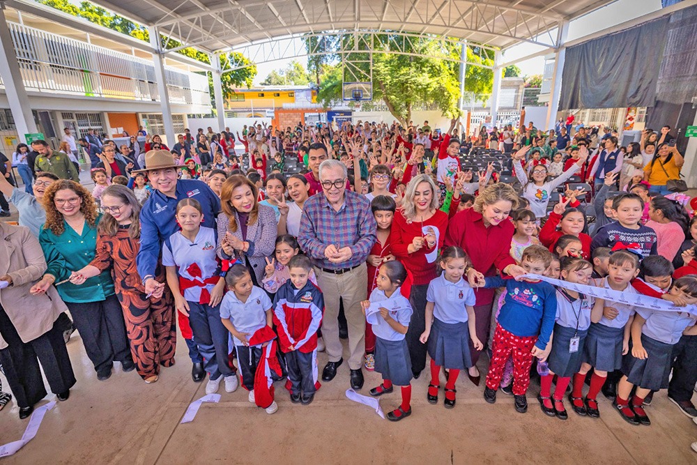 Los niños y las niñas de Sinaloa merecen tener espacios dignos para sus actividades, aseguró el gobernador Rubén Rocha Moya al inaugura una techumbre y una barda perimetral en la escuela primaria Álvaro Obregón con una inversión superior a los 6.2 mdp.