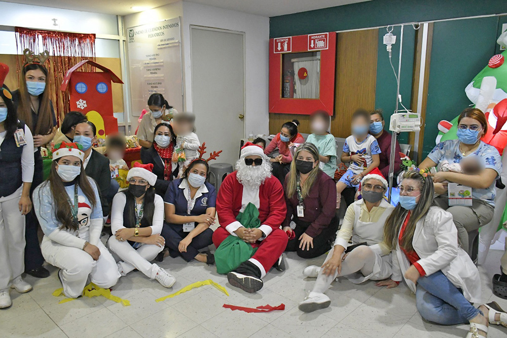 *Personal médico y de enfermería con atuendos navideños llevan alegría y distracción, además de regalos a todas estas niñas y niños que se encuentran bajo atención médica especializada