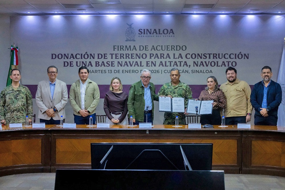 El Gobierno del Estado donó 15 hectáreas adicionales a las 10 que había donado anteriormente, por lo que la construcción del Sector Naval en Nuevo Altata tendrá un perímetro de 25 hectáreas y albergará de manera permanente mil 100 elementos de la Secretaría de Marina, informó el gobernador Rubén Rocha Moya.
