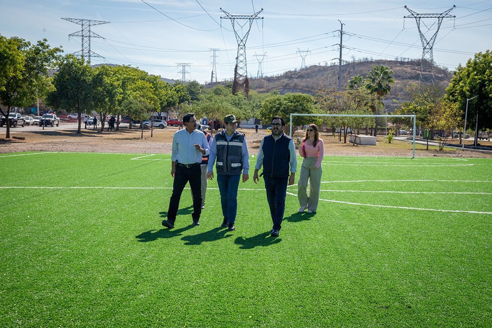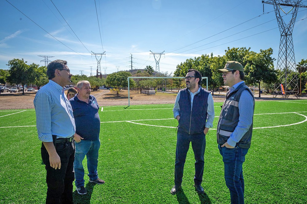 Otro de los espacios supervisados, fue la construcción de la cancha de fútbol con pasto sintético, y de voleibol en el Sendero de Paz ubicado el bulevar Agricultores, que ya registra la instalación de alumbrado público y andadores seguros con impacto positivo en la ciudadanía.