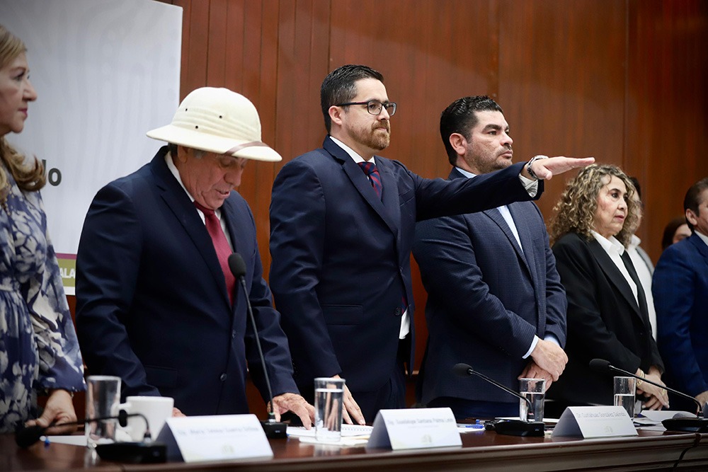 En la comparecencia estuvieron presentes la presidenta de la Junta de Coordinación Política del Congreso del Estado, Dra. María Teresa Guerra Ochoa, así como las y los diputados Guadalupe Santa Palma León, Briseida Valenzuela Buichia, Angélica Díaz Quiñónez, Eligio López Portillo y Ambricio Chávez Chávez.