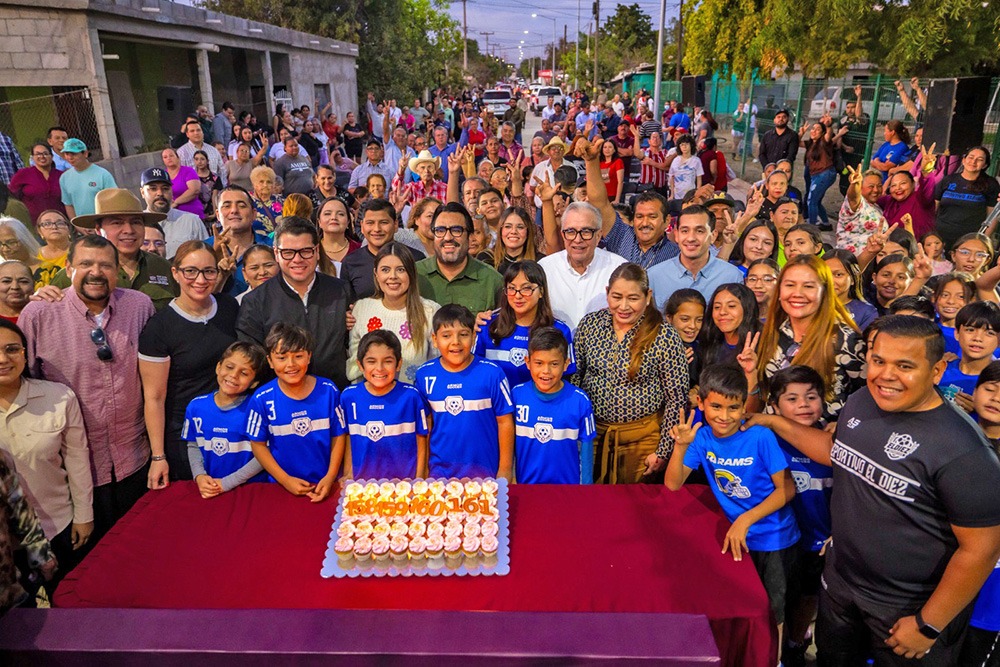 *El gobernador inauguró la pavimentación de cuatro calles y una cancha de futbol con pasto sintético, todo con una inversión de 17.6 millones de pesos