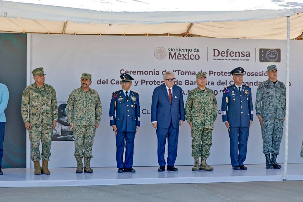 La toma de protesta del nuevo comandante estuvo a cargo del general de División Piloto Aviador, Carlos de Jesús Gracia Ríos, comandante de la Región Aérea Militar del Noroeste, para dar cumplimiento así al mandato de la presidenta de la República y comandanta suprema de las Fuerzas Armadas, Claudia Sheimbuam Pardo.
