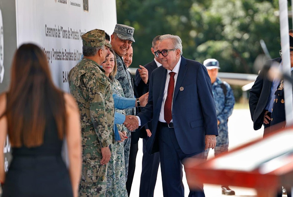 Por su parte, al término de la ceremonia militar, el gobernador Rocha se refirió a ese compromiso que le expresó el nuevo comandante de la Base Aérea Militar No. 10, el general Campos, de seguir apoyando en las tareas de seguridad, junto con el Ejército Mexicano, la Guardia Nacional, y la Secretaría de Seguridad y Protección Ciudadana.