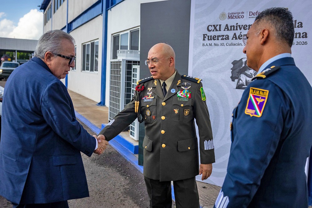 *El gobernador Rubén Rocha Moya acompañó a los altos mandos militares en la ceremonia del CXI Aniversario de la Fuerza Aérea Mexicana, que tuvo lugar en la Base Aérea Militar No. 10
