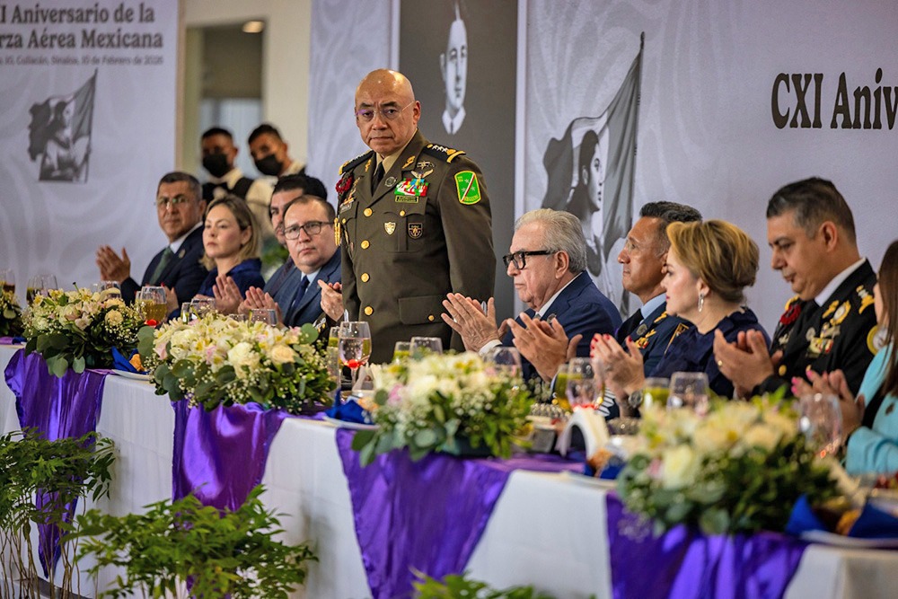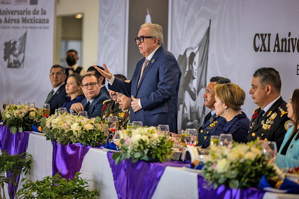 El gobernador Rubén Rocha Moya asistió a la ceremonia para conmemorar el CXI Aniversario de la Fuerza Aérea Mexicana, que tuvo lugar en el hangar de la Base Aérea Militar Número 10, donde su comandante, el general de Ala Piloto Aviador, Edgar Emanuel Campos Martínez, fue el anfitrión para los invitados especiales, contando también con la presencia del comandante de la Tercera Región Militar, general de División, Héctor Ávila Alcocer.