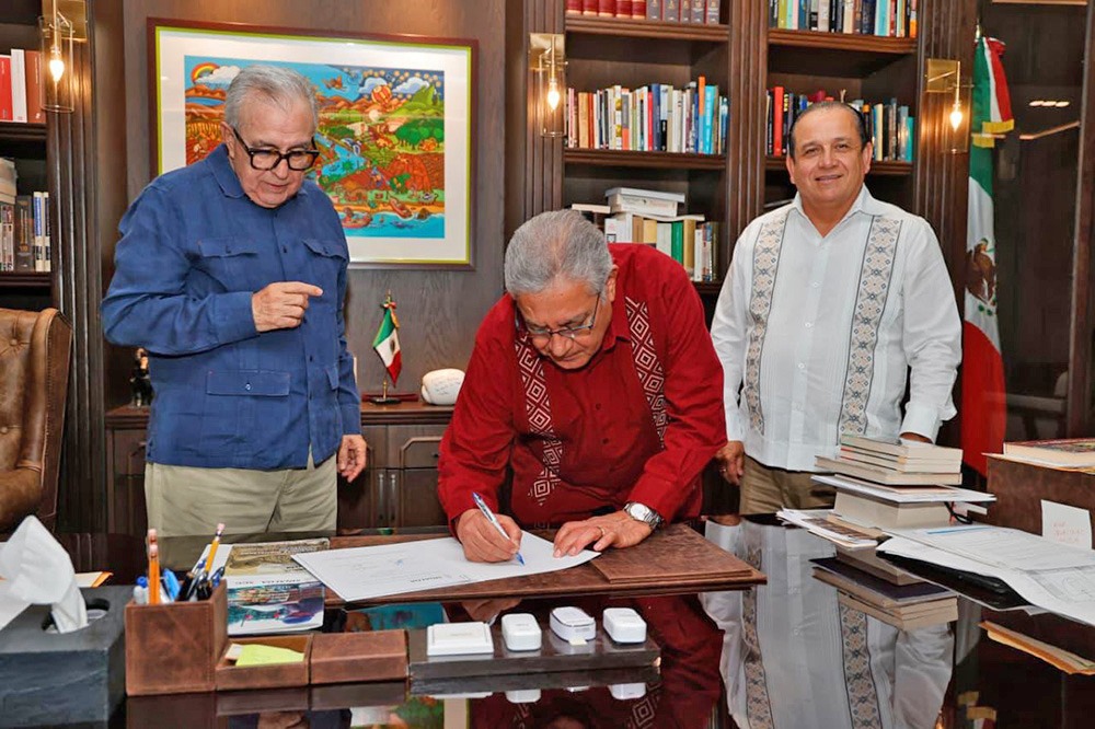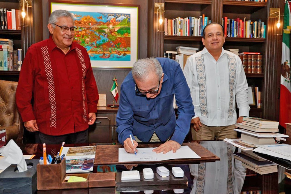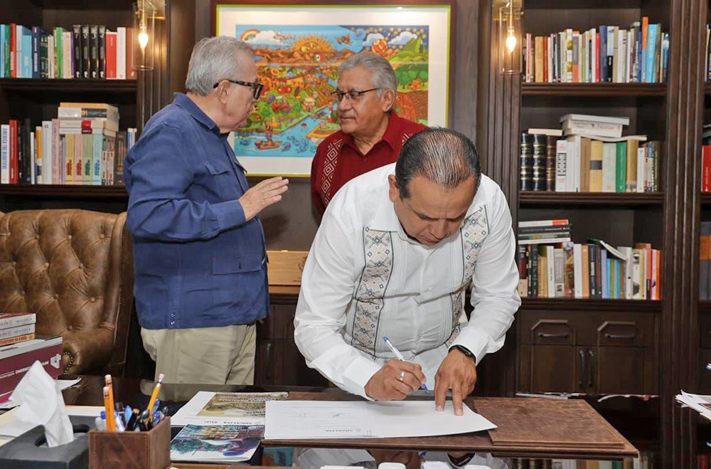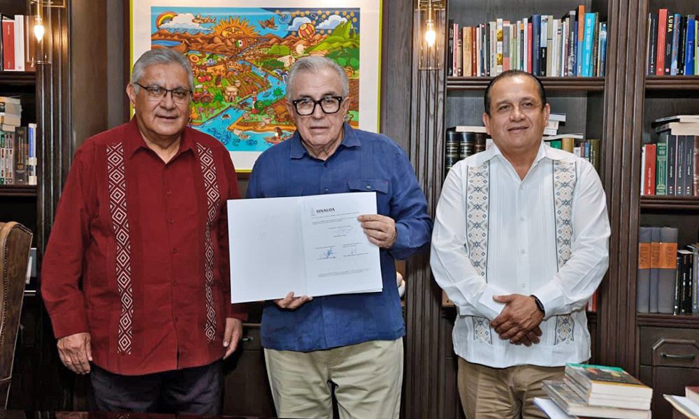El gobernador Rocha junto a los líderes sindicales celebraron el Decreto aprobado ayer jueves 12 de febrero por el Congreso del Estado, en el cual se adicionó un artículo a la Ley de los Trabajadores al Servicio del Estado de Sinaloa y un artículo a la Ley de Responsabilidades Administrativas del Estado de Sinaloa.