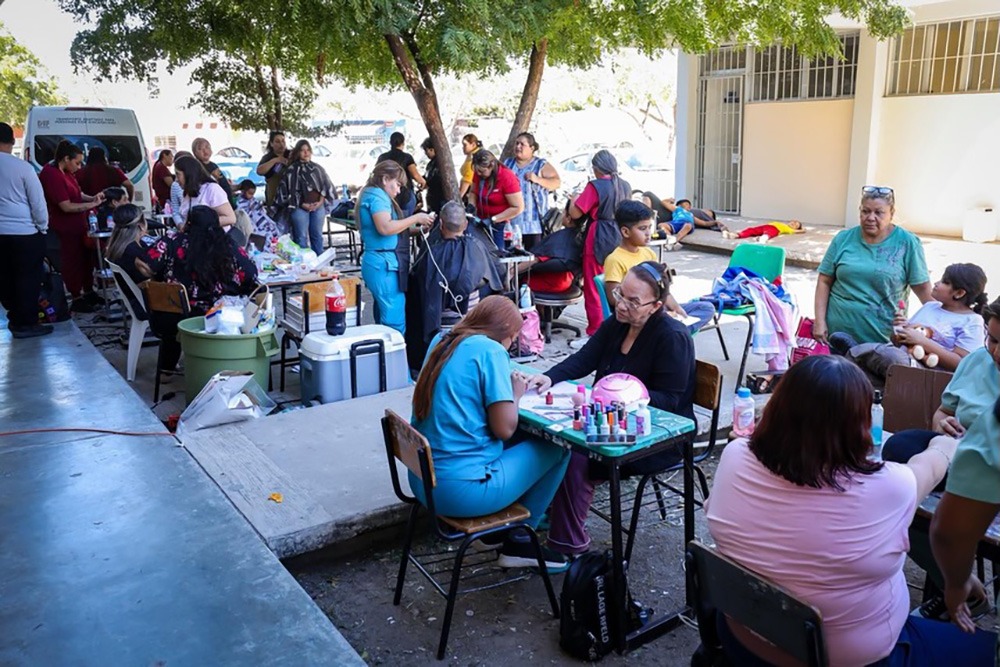 La presidenta del Sistema DIF Sinaloa, la Dra. Eneyda Rocha Ruiz, invitó a las familias a aprovechar todos los servicios y atenciones, destacando que en cada brigada se refleja el corazón de la política social del estado.