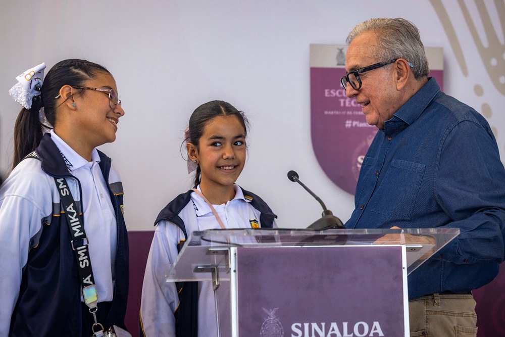 Acompañaron al gobernador Rocha, Joaquín Landeros, secretario de Administración y Finanzas, Teresa Guerra, presidenta de la JUCOPO; los diputados Rodolfo Valenzuela y Manuel Guerrero; Hugo Echave Meneses, director de ISIFE; Genaro Torrecillas y Ricardo Madrid, secretarios del SNTE 27 y 53, respectivamente, Irma Nydia Gasca, presidenta del DIF municipal; Miguel Ángel Valenzuela, director del plantel; así como alumnos y alumnas beneficiadas, personal docente y administrativo y padres de familia.