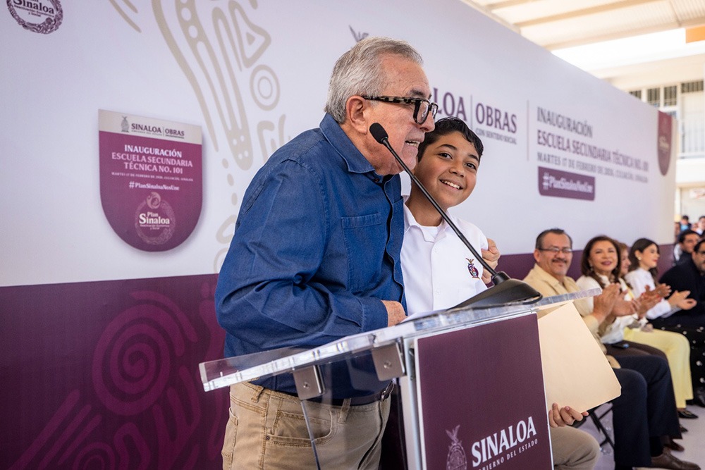 De la misma forma el gobernador Rocha, destacó que la mejor inversión para el futuro de la sociedad es la educación, por ello, atendiendo la demanda de los estudiantes del sector, hoy se entrega este digno espacio de enseñanza y aprendizaje moderno y funcional para los jóvenes que ya forman parte de la ETI 101 y las futuras generaciones, “El corazón de la secundaria van a ser ustedes”, dijo el gobernador Rocha.