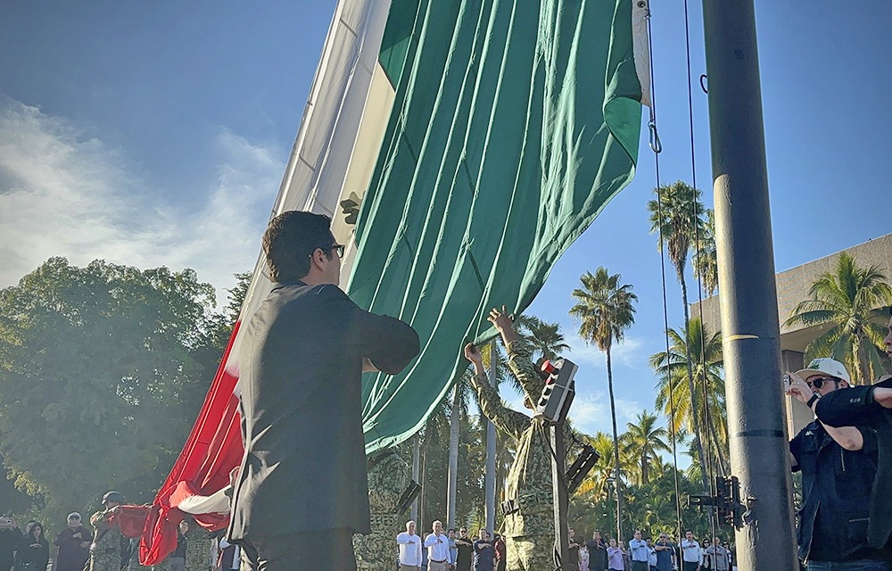 Correspondió al secretario de obras públicas, Raúl Montero Zamudio encabezar el acto cívico en representación del gobernador, Rubén Rocha Moya.