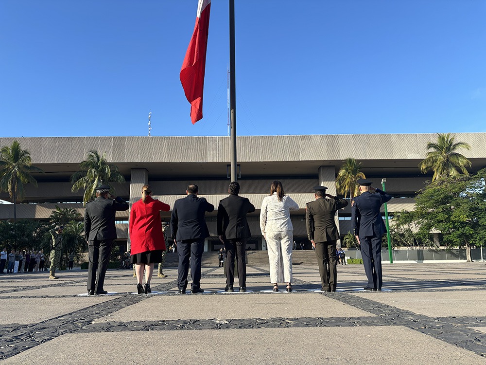 Montero Zamudio estuvo acompañado por la presidenta de la comisión de cultura del Congreso, diputada, Sthefany Rea Reátiga , del presidente del Supremo Tribunal de Justicia del Estado, magistrado, Jesús Iván Chávez Rangel, en representación del alcalde, Juan de Dios Gámez Mendivil, la secretaria de obras del Ayuntamiento, María del Carmen Morales, así como los representantes de la Novena Zona Militar, capitán segundo de Infantería, Arnoldo Jiménez Reyes y, por parte de la Fuerza Aérea, capitán segundo, piloto aviador, Hugo Alejandro Cortés Flores.