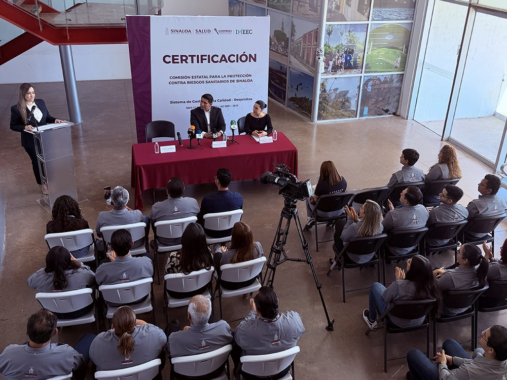 El Instituto Mexicano de Normalización y Certificación, A.C. (IMEEC), hizo entrega oficial de un certificado a la Comisión Estatal para la Protección contra Riesgos Sanitarios de Sinaloa, COEPRISS, en reconocimiento al cumplimiento de estándares de calidad y mejora continua en sus procesos.